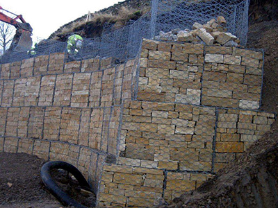 格賓籠是由金屬線(xiàn)材編織的角形網(wǎng)(六角網(wǎng))制成的網(wǎng)箱。石籠網(wǎng)由高抗腐蝕、高強(qiáng)度、具有延展性的低碳鋼絲或者包覆PVC的以上鋼絲使用機(jī)械編織而成,使用該網(wǎng)制作而成的箱型結(jié)構(gòu)就是石籠。