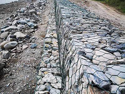 石籠網(wǎng)由高抗腐蝕、高強(qiáng)度、具有延展性的低碳鋼絲或者包覆PVC的以上鋼絲使用機(jī)械編織而成,使用該網(wǎng)制作而成的箱型結(jié)構(gòu)就是石籠網(wǎng)箱。根據(jù)ASTM和EN標(biāo)準(zhǔn),所使用的低碳鋼絲直徑根據(jù)工程設(shè)計(jì)要求而不同。一般介于2.0-4.0mm之間,石籠網(wǎng)鋼絲的抗拉強(qiáng)度不少于38kg/m2,金屬鍍層重量一般高于245g/m2,石籠網(wǎng)片的邊緣線直徑一般要大于網(wǎng)線直徑。其雙線絞合部分的長(zhǎng)度不得小于50mm.以保證絞合部分鋼絲的金屬鍍層和PVC鍍層不受破壞。